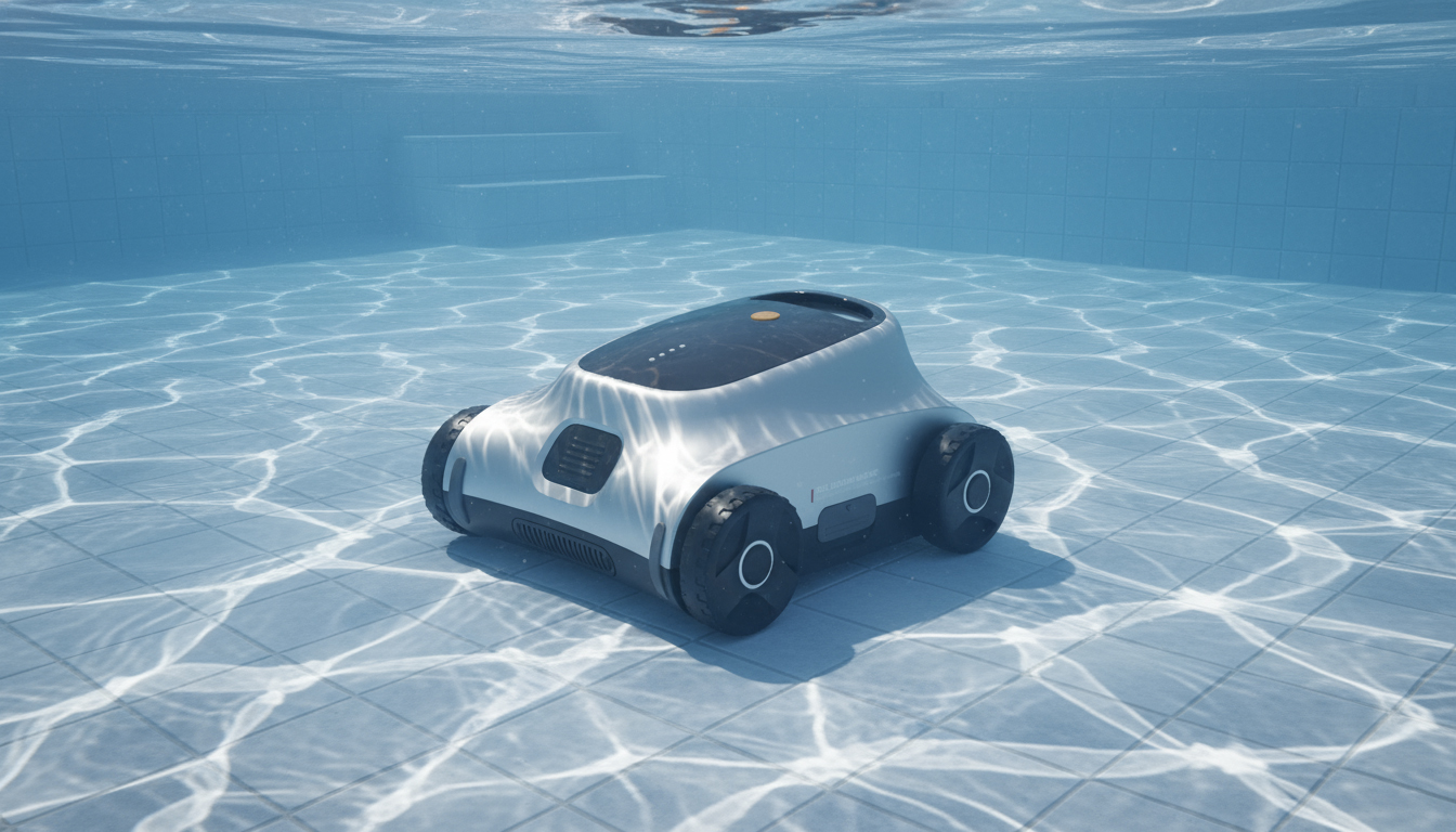 conventional tool-oriented design and redefine the pool cleaning experience with minimalist tech aesthetics,